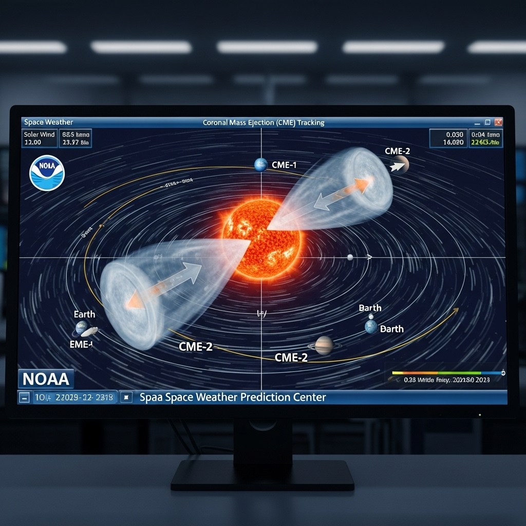 What makes this event particularly exciting is the possibility of what scientists playfully call a “cannibal CME.” This happens when a faster-moving CME overtakes and “swallows” a slower one that was launched earlier.[5][9][10][11][12] This combination can create a larger, more complex plasma wave that can trigger a more powerful geomagnetic storm when it reaches Earth.[10]