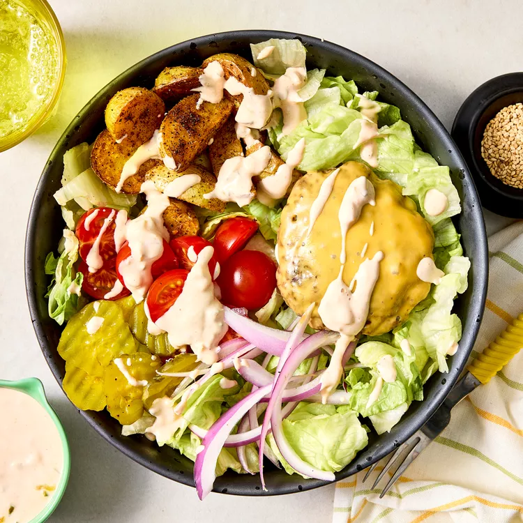 All the crave-worthy flavors of a cheeseburger, minus the bun. Crisp lettuce, pickles, red onion, and tomatoes topped with a warm, melty patty and that iconic special sauce. Familiar comfort in a fresh, lighter form.